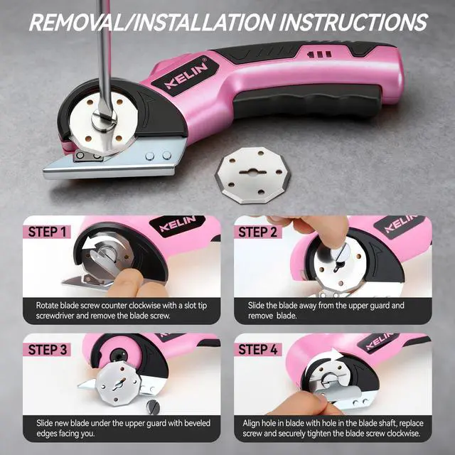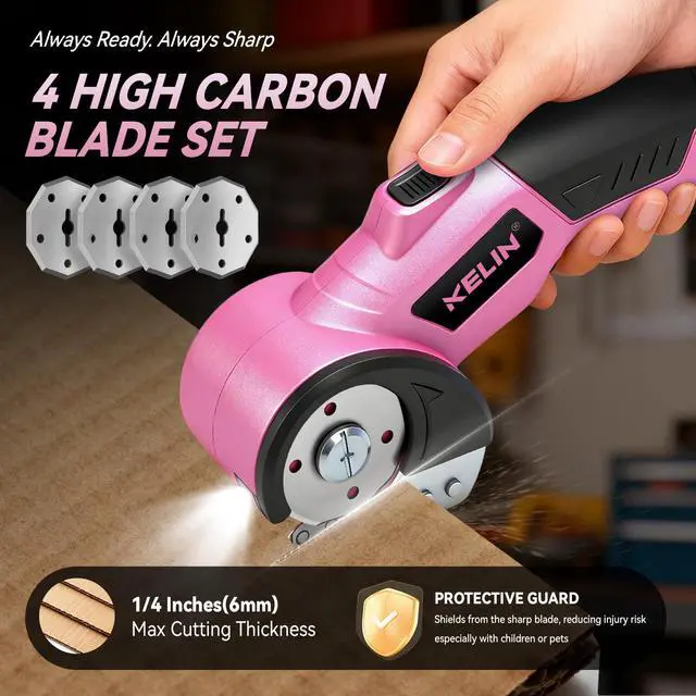 Transform your cutting tasks with KELIN's innovative cordless electric scissors. This versatile 4.2V rotary cutter comes equipped with a powerful 3000mAh rechargeable battery, ensuring extended use for all your projects. The built-in LED light illuminates your cutting path for enhanced precision and visibility. Featuring four specialized blades, these electric scissors effortlessly slice through various materials including fabric, carpet, carton, plastic, and leather. The cordless design offers unrestricted movement and easy maneuverability, making it perfect for both DIY enthusiasts and professional crafters. Whether you're working on home improvements, craft projects, or professional tasks, these electric scissors deliver clean, precise cuts while reducing hand fatigue compared to traditional scissors. The ergonomic design and reliable performance make this tool an essential addition to your crafting arsenal.