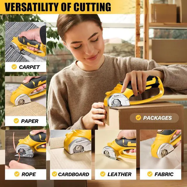 LIGHTWEIGHT & ERGONOMIC FOR EASY HANDLINGWeighing just 0.91 lbs, this sakerplus cordless electric scissors is ideal for long sessions without hand strain. The non-slip, ergonomically designed handle of this electric cardboard cutter fits comfortably in either hand, making it great for DIY projects, gift wrapping, classroom crafts, and light home use.