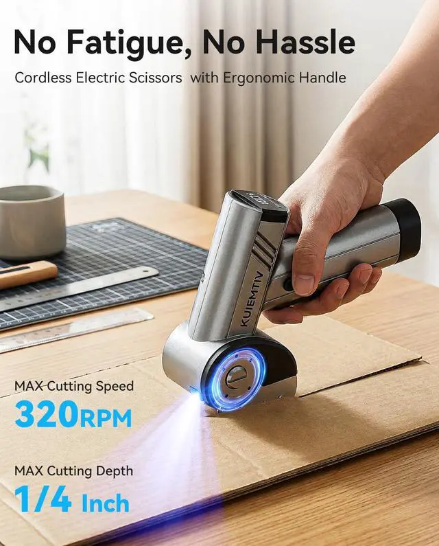 Precise Efficient Cutting & Multi-Material CompatibilityFeaturing 4 adjustable speeds (120/160/200/320 RPM) and a 1/4 inch maximum cutting depth, this electric cardboard cutter delivers precise, smooth cuts on a wide range of materialsfrom delicate fabric and leather for DIY crafts to thick delivery boxes and carpet for home chores. Equipped with a high-precision guiding system, it eliminates uneven cuts and material jams, making it an all-in-one, hassle-free solution for daily home cutting tasks and creative DIY projects.