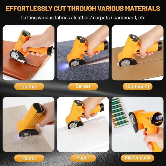 Perfect for tackling cardboard, fabric, leather, and various materials, this electric cutter delivers precision and efficiency that manual scissors simply can't match;