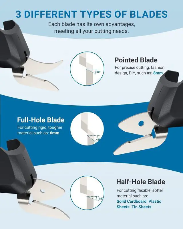 Cuts 6–8 mm soft thick materials and 0.5 mm hard materials, fulfilling all your cutting needs.