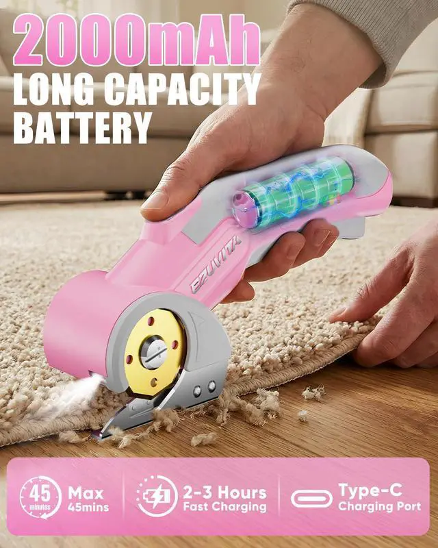 Long-Lasting Battery with Power Indicator: Built-in 2000mAh 4V lithium battery supports up to 45 minutes of continuous cutting. The integrated battery indicator keeps you informed of power status, so youre never caught off guard during a task. Includes a USB Type-C charging cable for easy recharging
