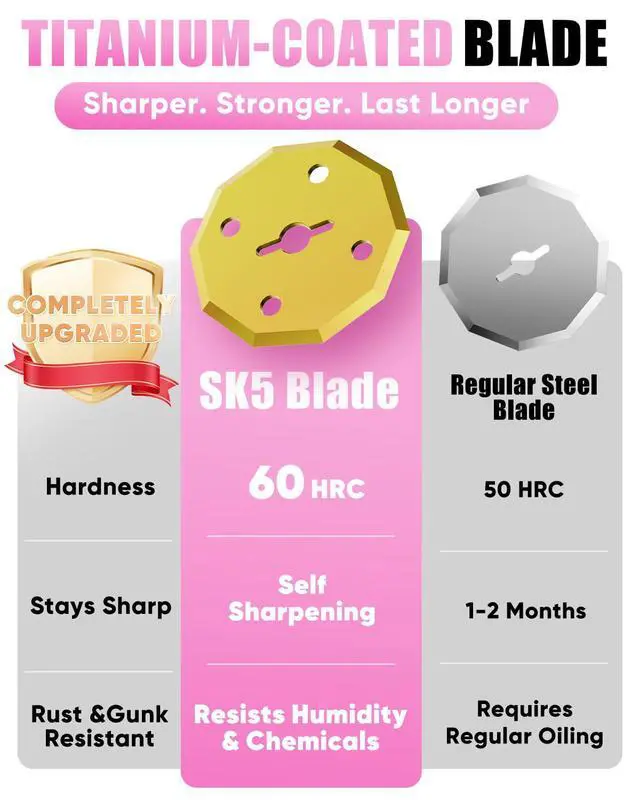 High-Speed Cutting with Titanium-Coated SK5 Blade: Equipped with a premium SK5 steel blade with titanium coating, delivering sharp, durable, and clean cuts. With a no-load speed of 320 RPM and a maximum cutting thickness of 0.24 inches, this electric cutter slices through materials quickly and efficiently with minimal effort