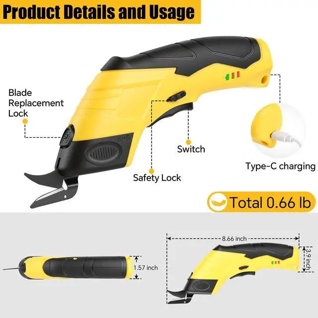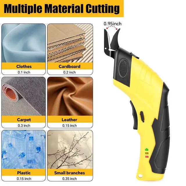 - Electric scissors effortlessly cut through materials like cardboard, fabric, plastic, paper, and leather, making them an excellent addition to your workshop.
