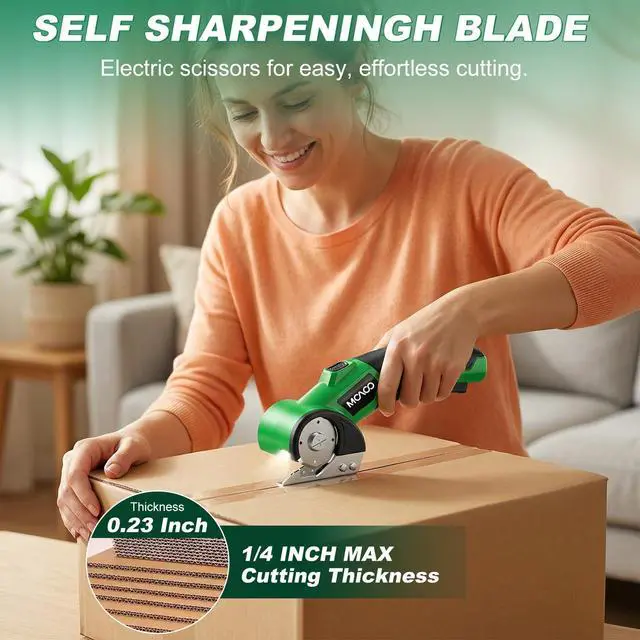 Efficient Cutting: Electric cardboard cutter features a powerful 4V motor and high-speed rotating blades, allowing you to easily and smoothly cut cardboard, fabric, leather, plastic, and thin carpets up to 1/4 inch thick, helping you complete cutting tasks faster and with less effort. Its cutting speed is 10 times faster than manual scissors