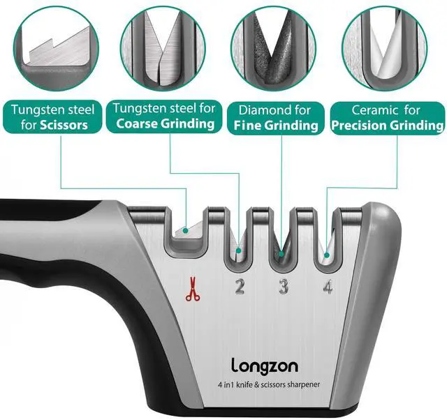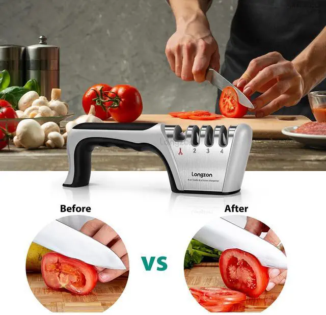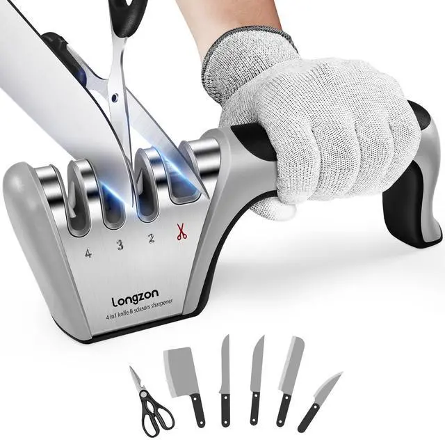 ![Alt view image 2 of 7 - 5-in-1 Knife Sharpener [4 Stage] with a Pair of Cut-Resistant Glove,Original Premium Polish Blades, Best Kitchen Knife Sharpener Works for Fruit and Steel Knives, Scissors(Black+Silver)](https://c1.neweggimages.com/productimage/nb640/C5T4D2603270Q58RCBF.jpg)