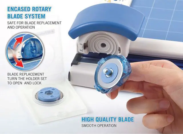 - Encased Rotary Blade System . . . The rotary blade is encased inside a housing compartment keeping your hand and fingers safe and secured.