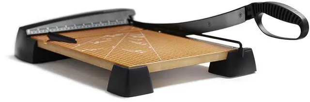 The sturdy wood base of this trimmer offers a secure platform for high-volume cutting, while rubber feet provide stability on multiple surfaces. A textured and oversized rubber grip provides relief during long periods of cutting, and the simple downward trimming motion means anyone can make accurate cuts with ease.