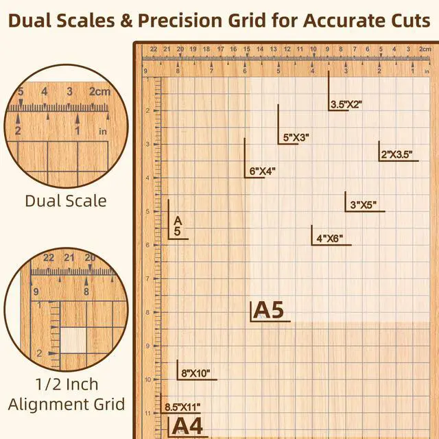Sturdy Wood & ABS Construction: A reinforced wood base paired with durable ABS support provides enhanced stability and a modern lookdesigned to stay flat and steady for everyday precision cutting