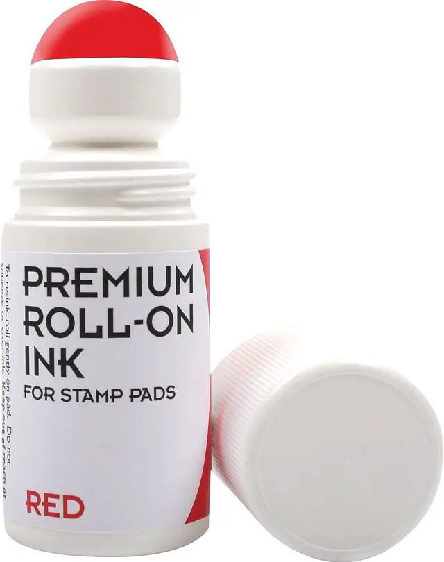 Cosco 2000 PLUS Roll-on ink in red color comes in a 2 oz bottle that is ideal for stamp pads and produces detailed/quality impressions.