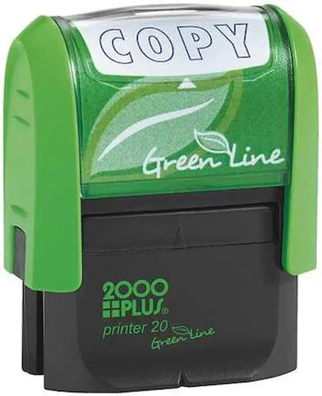 Message Stamp, Legend COPY, Stamp Ink Color Blue, Font Helvetica Neue & ITC Bookman Std., Character Height 5/16 in, Imprint Area Height 1/2 in, Imprint Area Width 1 1/2 in, Material Made of 65 Percent Recycled Plastic and Metal, Overall Height 2 3/4 in, Overall Length 1 1/4 in, Overall Width 2 1/2 in. This item has been restricted from sale in the following state (s): []