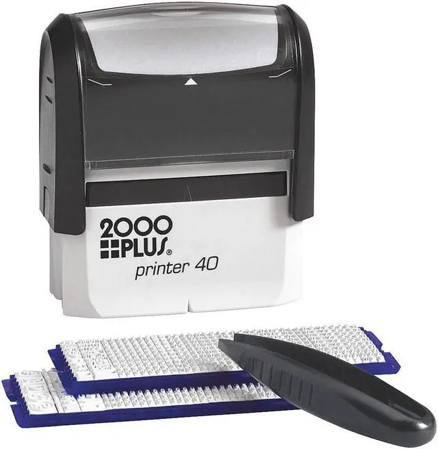 Customizable Stamp Kit, Legend Many Different Creations, Stamp Ink Color Black, Imprint Area Height 7/8 in, Imprint Area Width 2 1/4 in, Character Height 9-64 in, Font Helvetica Neue & ITC Bookman Std., Number of Bands 0, Material Plastic, Overall Height 8 3/4 in, Overall Length 6 in, Overall Width 1 3/4 in, For Use With Cosco Self-Ink Refill, Black, Features 6-Lines to create your custom message, Includes Ink Pad, Self-Inking Stamp, Tweezer and Type with Over 725 Characters In 2 Sizes.