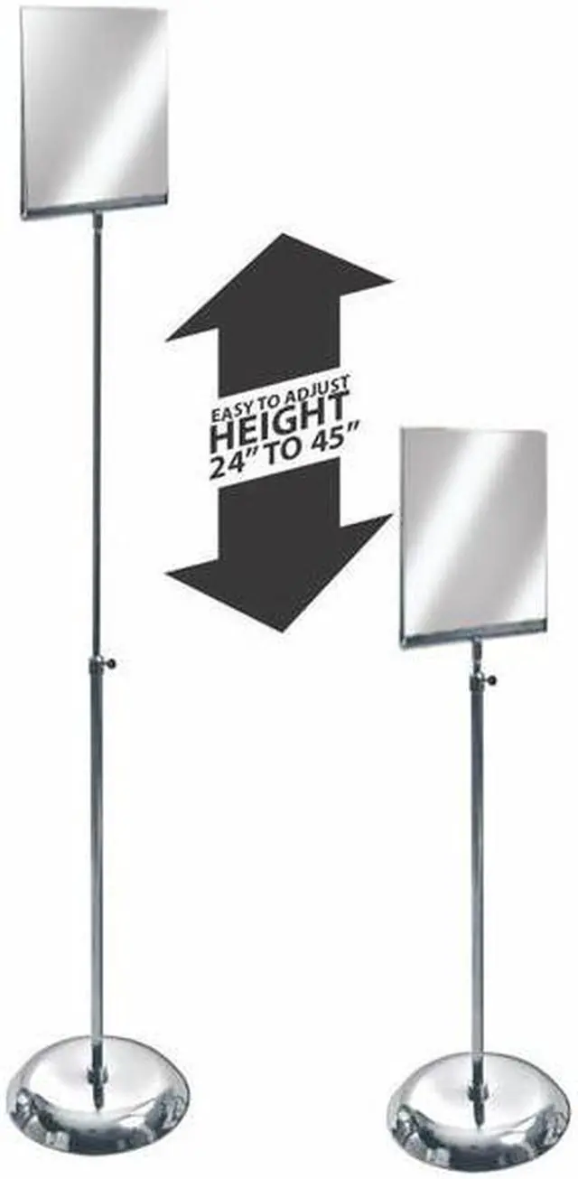 Azars Top Load U-Frame Floor Displays are a perfect way to display graphics in store fronts or tradeshow booths. Each unit comes standard with a round chrome base and an adjustable pole that allows for height adjustment from 24 to 45.25.