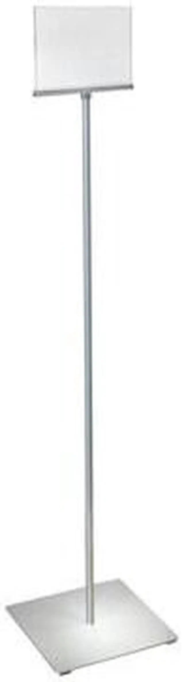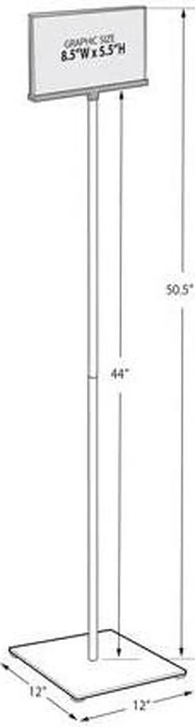 Azars Pedestal Two-Sided Sign Holder Stand on Square Metal Base is perfect to display graphics, advertisements, promotions, and social distancing messages in stores, lobbys, hospitals, medical facilities, schools, offices, cafes, or anywhere a sign is needed. With a small footprint you can get your message or promotional information right in front of your target audience. Each unit comes standard with a Double Sided Acrylic Frame, Metal Pole, and Sturdy Metal base with rubber bumpers on the bottom. Easy assembly and top Loading design for inserting graphic.
