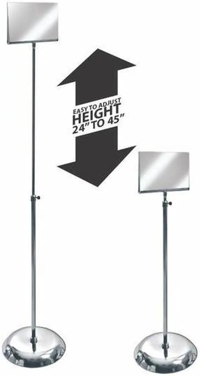 Azars Top Load U-Frame Floor Displays are a perfect way to display graphics in store fronts or tradeshow booths. Each unit comes standard with a round chrome base and an adjustable pole that allows for height adjustment from 24 to 45.25.
