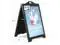 Sidewalk A-Frame Sign is made of durable plastic for indoor or outdoor use. This A-frame is double-sided and holds two 24 w x 36 h signs. Place your marketing information or graphic on both sides of the A-Frame to maximize your advertising opportunity. The sidewalk sign's wheels and handle make this item very portable and easy to transport. The sign can be securely anchored in place by adding dry sand on each side (up to 5 lbs. per side). The anti-glare transparent cover lens protects and preserves your graphic from being damaged by the elements.