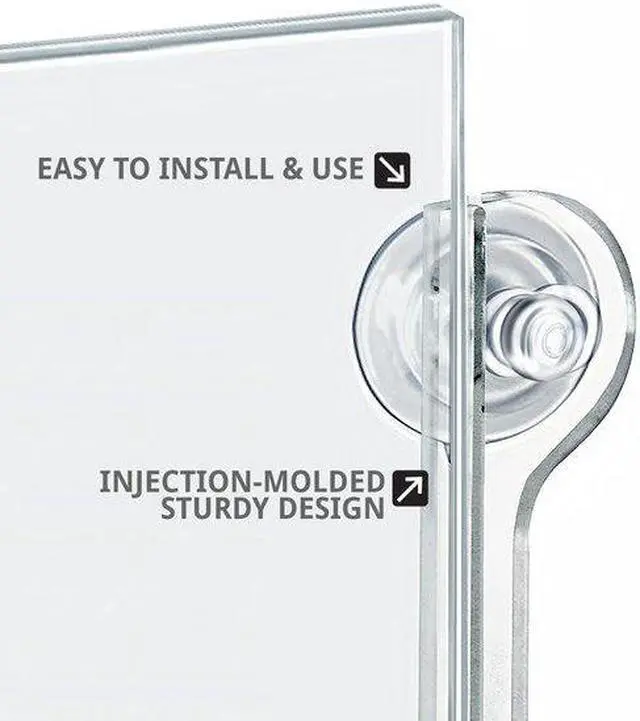 Clear acrylic frames include high quality suction cups for long-term holding power. For best results, apply to a clean, non-porous surface.