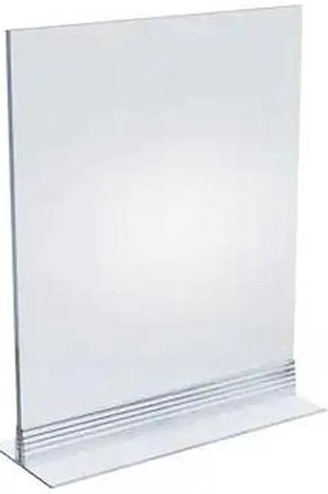 T-strip sign holders can be used vertically or horizontally. Sign or photos are pressed between two separate pieces of crystal clear acrylic, held in place by T-Strip Sign holder.
