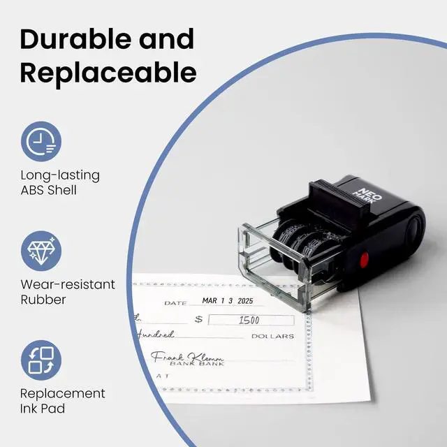 Durable & Replaceable Strong ABS frame and tough rubber last for 5000 vivid impressions. Includes an extra ink pad for long-term use. Providing you with a long-lasting and stable stamping experience.