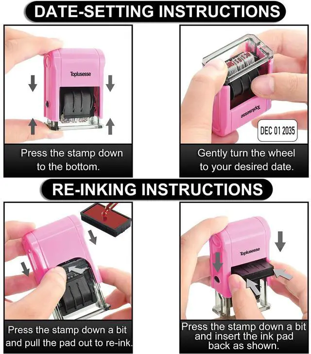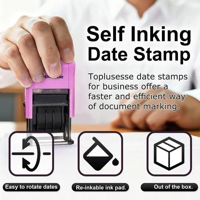 Self Inking Date Stamp Efficient Toplusesse self inking date stamp black ink is a perfect solution for those who need to write dates repeatedly by hand, self inking rubber date stamps for business offer a faster and efficient way of document marking. Save time and get rid of sore hands caused by repeated handwriting of dates, ideal office supplies for your daily usage, the year band is from 2024 to 2035.