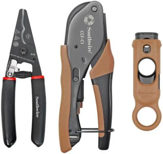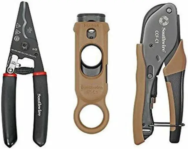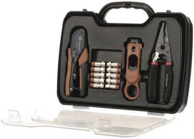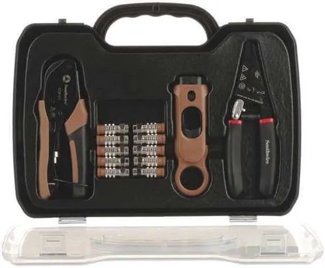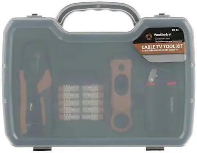 Southwire kit-c1 cable TV tool kit complete 13-Piece kit for terminating coax. Make custom length coax patch cables. All 3 tools included to cut, strip, and crimp coax UPC NO:032886935152 SKU:ADIB01ADWQ6F2
