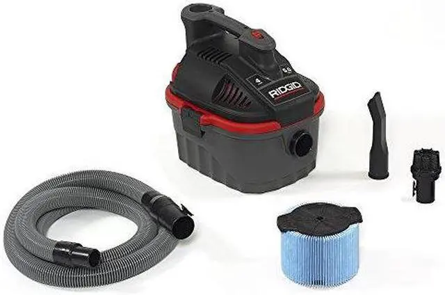 Tackle messy cleanup jobs with the RIDGID 4000RV Portable Wet Dry Vacuum. The 4-gallon small wet dry vac has a compact design that doesn't sacrifice power thanks to a high-performance 5.0 Peak Horsepower motor. Both durable and long lasting, the motor delivers the same power youll find in vacuums three times its size. This wet dry vac has a 1-7/8-inch by 8-foot professional locking hose that won't pull loose while in use, ensuring consistent and optimized air flow. Conveniently stored on-board, the hose has a smooth interior surface that prevents clogging. It can also lock into the blower port for removing leaves and debris from walkways, decks or job sites.