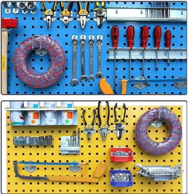 Tool Hanging Board Steel Wall Mounted Kit Display Organizer Peg Board with 10 Hooks
