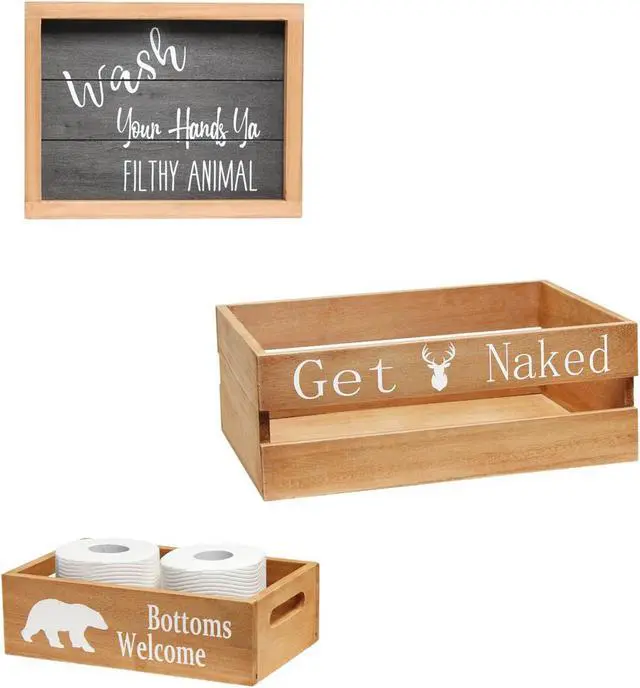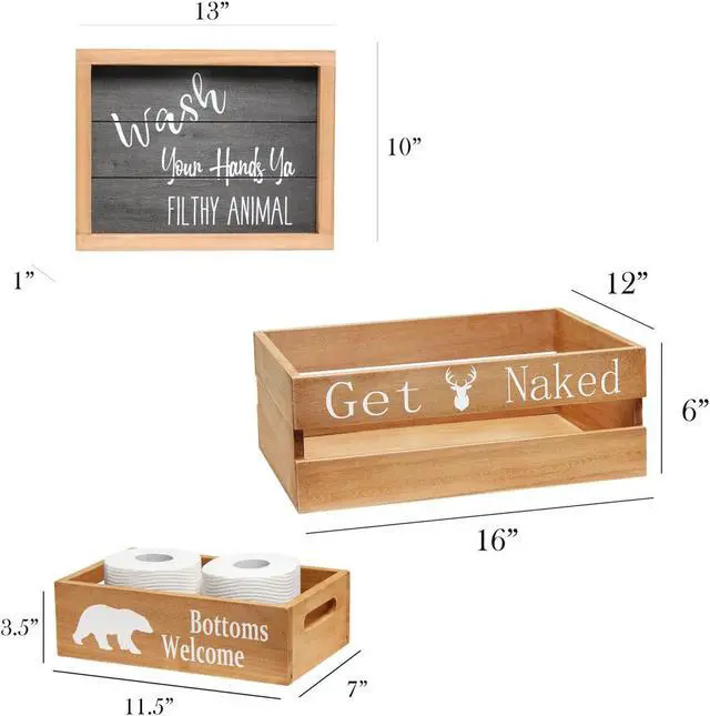 Revamp your bathroom with this three piece matching decorative set. This set will give your bathroom a complete, cohesive look. It includes 1 decorative frame, 1 toilet paper holder and 1 towel holder in a stylish, clean finish to give your bathroom the perfect update!