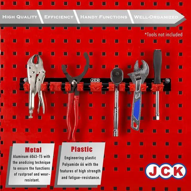 JCK is one of the leading manufacturer of tool organizer in Taiwan. With over 40 years of profound experiences, we are recognized by traders all over the globe. JCK has developed various molds for tool organizers. We wants to ensure our products' quality, so we mainly introduced Japanese-made plastic-injection facilities for molding and adopted 6063-T5 grade aluminum and engineering plastic PA 66 (Nylon 66) as our main materials. JCK provides various options and customize services to fulfill customers' favors.