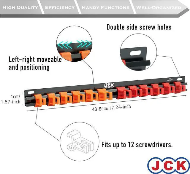 JCK Metric Air Tool Moveable Professional Quality Aluminum Screwdriver Organizer Socket Organizer Holds up to 12 screwdrivers.