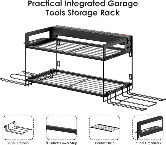 Power tools and batteries organizer with charging station, and have a single place to live. It doesn't take long to find them, will improve efficiency and come with integrated 8 outlets power strip. Made entirely of metal, strong and durable.