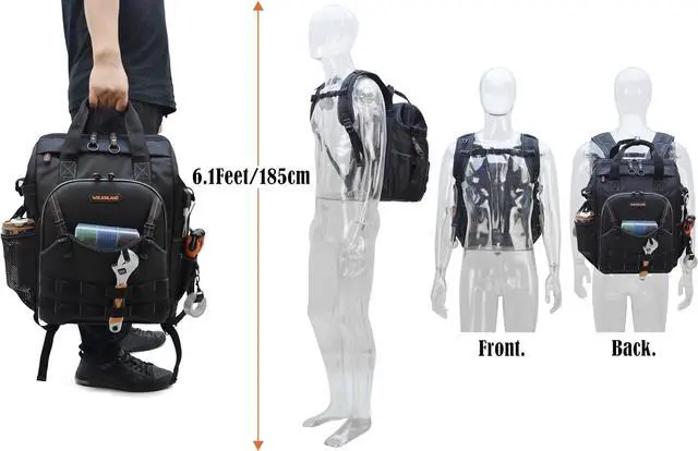 Comfortable-Carrying: Well-padded back and shoulder straps of maintenance backpack with a buckled chest strap to adjust for a perfect fit. Good choice as backpacks for tools.
