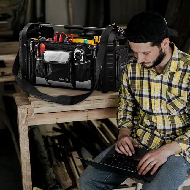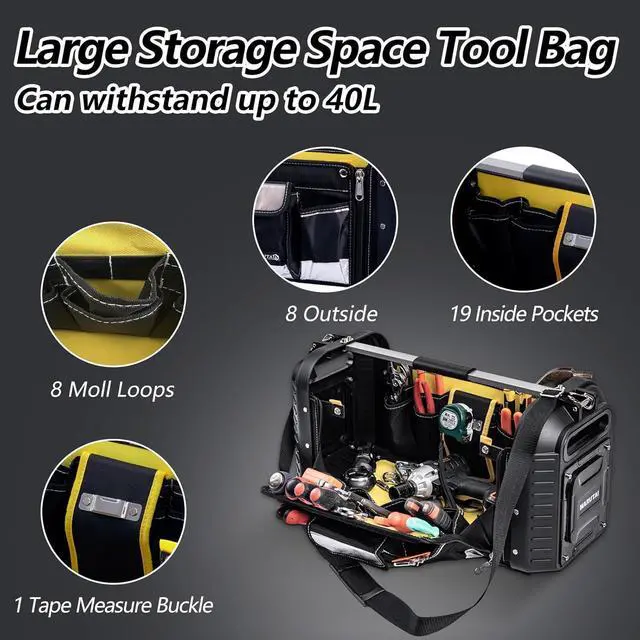 This tool bag is designed with a movable slider at the connection of the side shoulder straps, and the adjustable shoulder straps can ensure that the weight of the tool bag is evenly distributed, preventing you from tipping over during transportation, and also provides maximum comfort