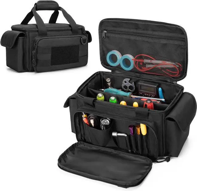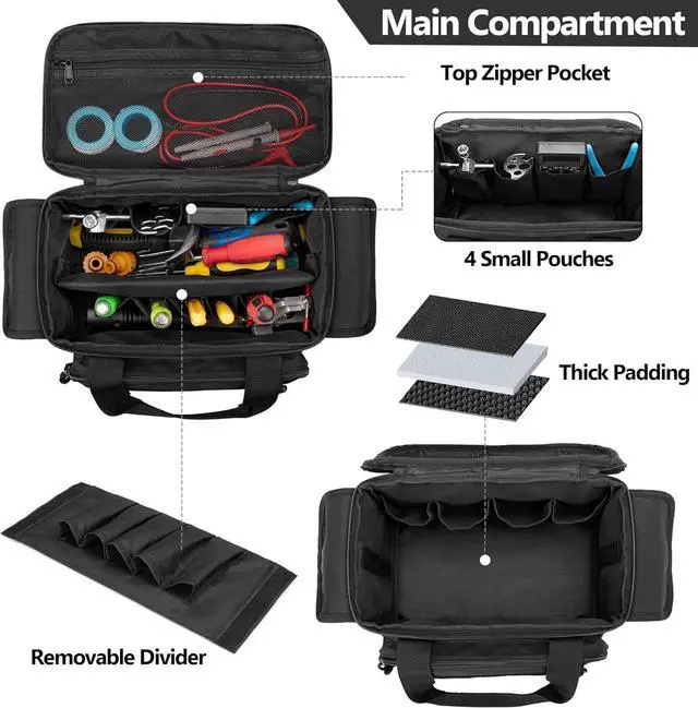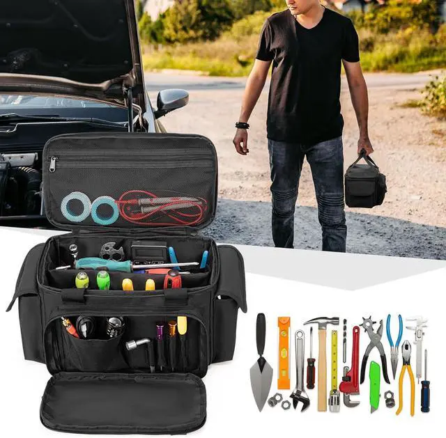 MULTIFUNCTIONAL - This Rexmica tool organizer bag can meet your most daily demand, keeps hand tools and accessories organized. Multi-purpose work bag is an ideal present for electricians, mechanics, maintenance workers and gardeners.