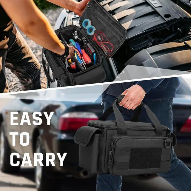 SMALL HAND TOOL BAG - The top handle with padded wrap for comfortable grip and relieve stress on hands. Full opening design with smooth two-way zipper makes it easy to access. Suitable as a daily tool bag at home, in the tool room or in the car trunk.