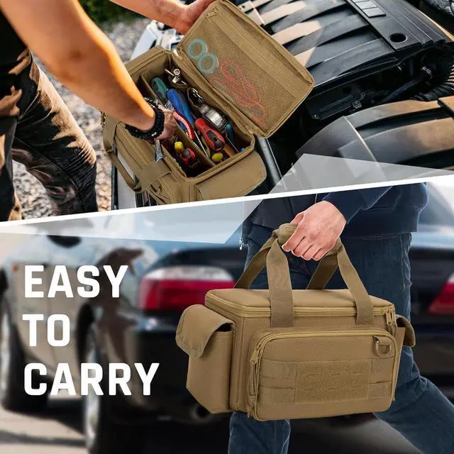 MULTIFUNCTIONAL - This Rexmica tool organizer bag can meet your most daily demand, keeps hand tools and accessories organized. Multi-purpose work bag is an ideal present for electricians, mechanics, maintenance workers and gardeners.