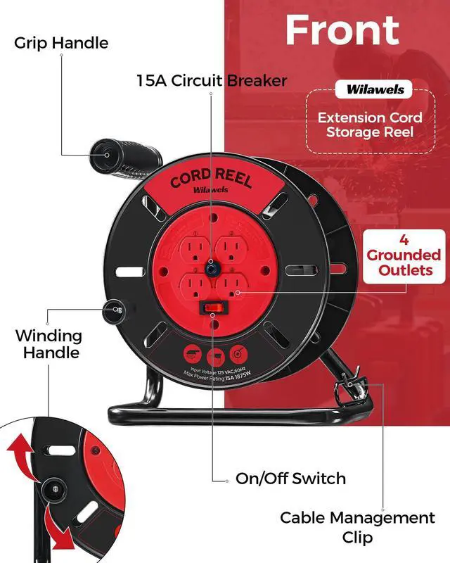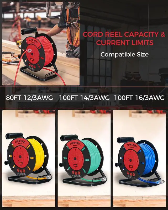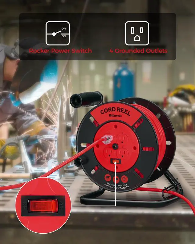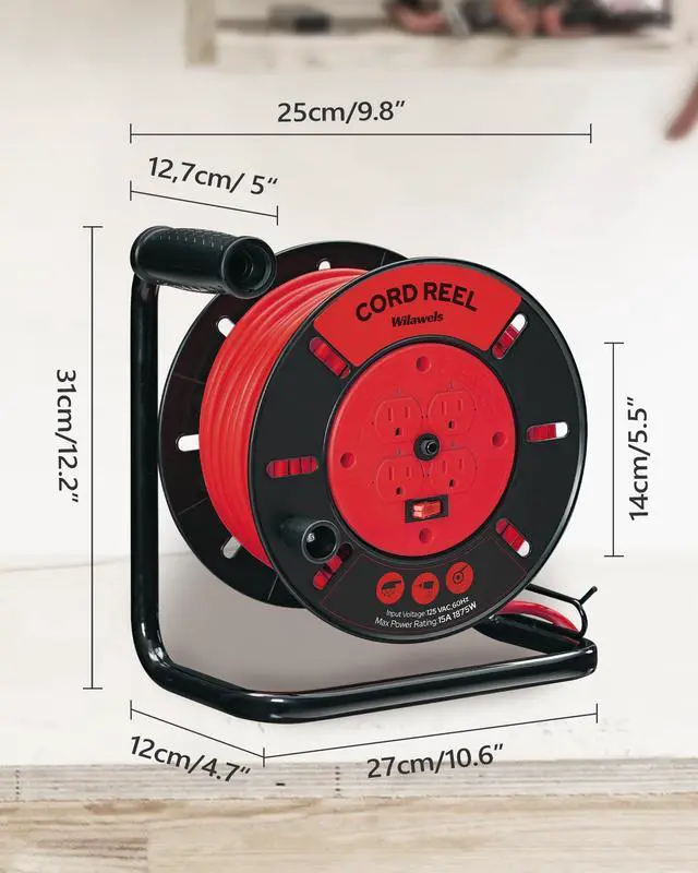 WILAWELS Retractable Extension Cord Reel and Extension Cord Storage Reel