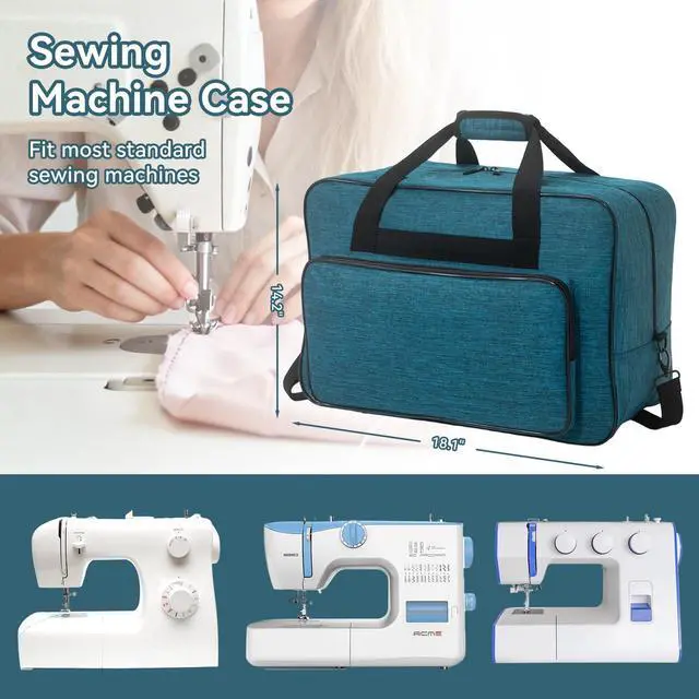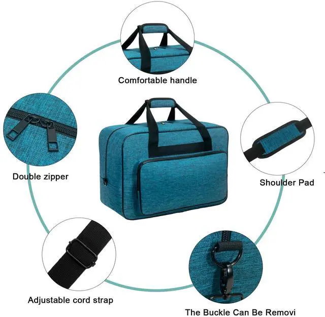 Sewing Machine Carrying Case with Padded Handles, Suitable for Most Standard Household Sewing Machines Compatible with Singer, Brother, Janome - Peacock blue