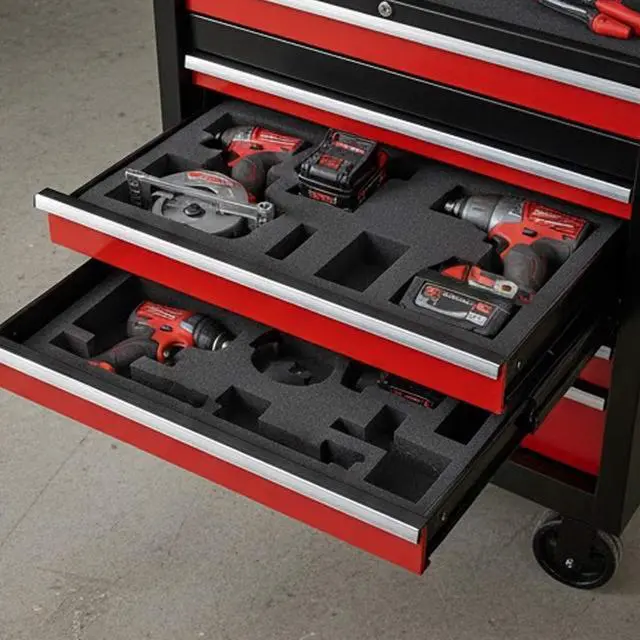 The Milwaukee PACKOUT Customizable Foam Insert is designed to provide secure, organized, and fully customizable storage for your PACKOUT Drawer Tool Boxes. This insert allows you to tailor compartments to fit your tools perfectly, helping protect equipment while maximizing storage efficiency.