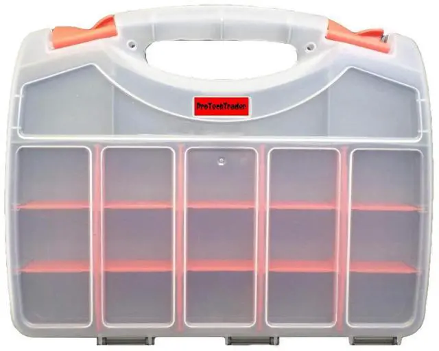 Double-Sided Parts Storage Organizer - 36 Compartments Professional 36-compartment storage case for electronics, hardware, crafts. Adjustable dividers | Clear lid | on orders $35+