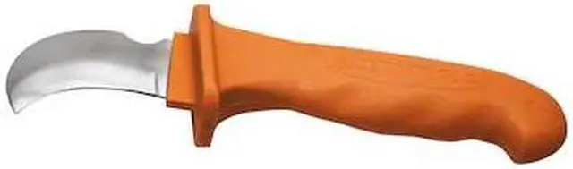 California Proposition 65: This product contains a chemical known to the State of California to cause birth defects or other reproductive harm. Skinning Knife, Blade Material Steel, Overall Length 8 3/4 in, Tether Ready Yes, Blade Length 2 3/8 in, Handle Style Cushion Grip, Insulated Yes, Voltage Rating 1, 000 V, Application Cable Scoring and Cutting, Features Flame Retardant, Molded Dual Layer Insulation, Handle Color Orange, Handle Material Plastic, Safety Features Insulated, Standards 2012 Ed. CSA Z462-08, ASTM F1505-10, CAN/ULc-60900-09, IEC 60900:2012, NFPA-70E, Weight 5.6 oz. This item has been restricted from sale in the following state (s): []