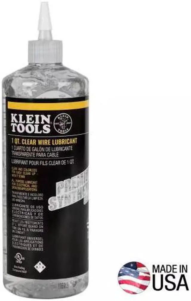 Provide cable with a friction-less pull through conduit with the slow-drying, non-toxic Klein Tools 32-ounce Premium Synthetic Clear Lubricant. This lubricant is clear and won't stain, making it ideal for use around finished rooms, carpeted areas and painted walls.