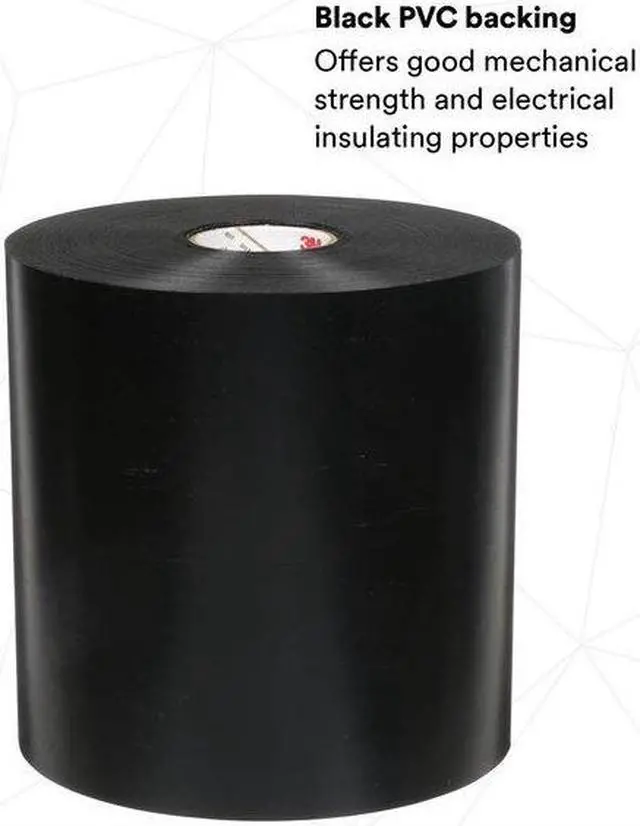 Electrical Tape, Tape Backing Material Vinyl, Tape Adhesive Rubber, Tape Thickness 20.00 mil, Tape Width 6 In., Tape Length 100 ft., Tape Shape Continuous Roll, Tape Color Black, Max. Voltage 2000, Max. Tape Performance Temp. 175 Degrees F, Tape Tensile Strength 40 lb./in., Tape Adhesive Strength 30 oz./in., Series Scotchrap 51, UV Resistance Yes, Standards ASTM D1000, Tape Color Family Black, Package Quantity 4. This item has been restricted from sale in the following state(s): []