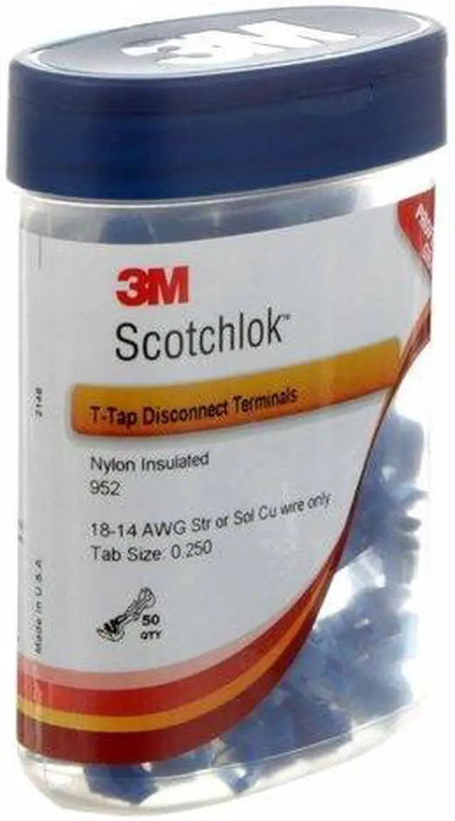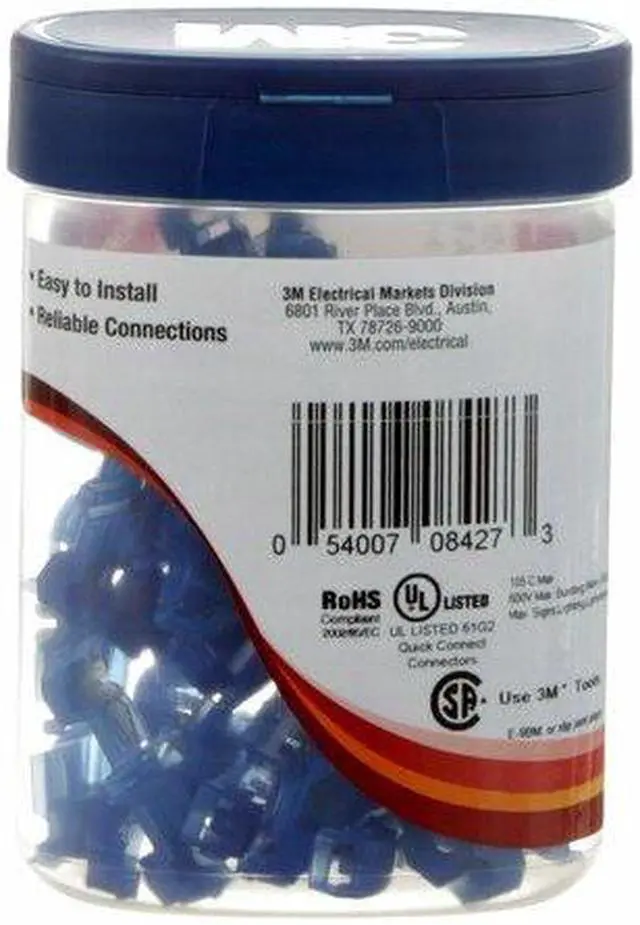 Insulation Displacement Connector, Wire Type Electrical, Connector Type T Tap, Fill Material No Fill, Wire Range (Run) 18 to 14 AWG, Wire Range (Tap) 18 to 14 AWG, Color Blue, Max. Insulation Dia. 0.15 in, Number of Ports 1, Application Dry Environment, Yes, Max. Voltage 600 V, Insulation Material Nylon, Max. Temp. 221 Degrees F, Crimping Tool 2JLF8, Standards CSA Certified, UL Listed, Package Quantity 50. This item has been restricted from sale in the following state (s): []