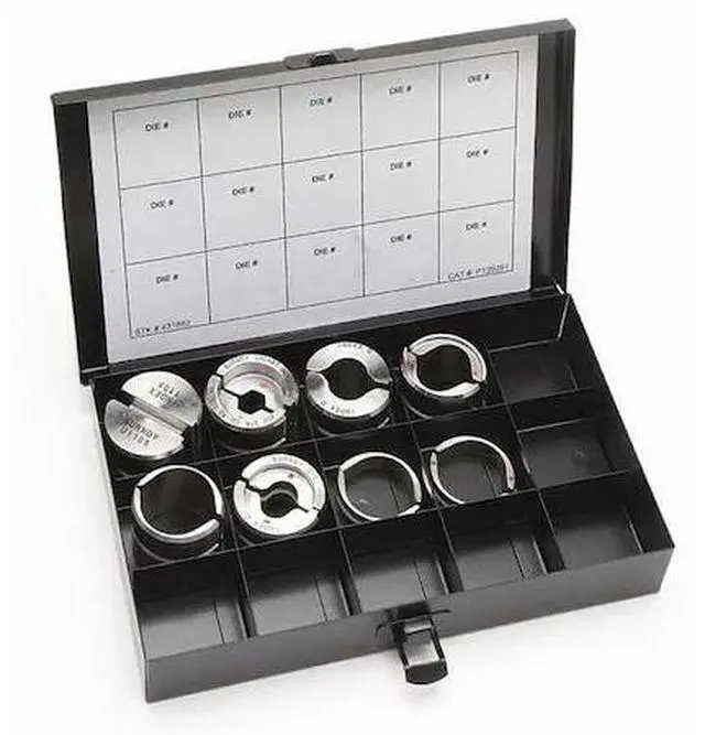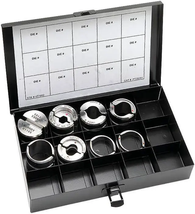 The BURNDY UDIEKITHYGRD U die Kit for HYGROUND is a crimping tool die set that offers the utmost convenience and flexibility in working with various types of electrical wire and cable. This kit comes with 8 dies, including 2 lower dies and 6 upper dies. The die series is U style, suitable for crimping on 4/0 AWG to 500 kcmil copper lugs and 6 to 2 AWG primary applications. It can also be used with hand or power tools. The maximum crimping force of this kit is 12 ton. If you are looking for an all-inclusive solution when it comes to your electrical wire and cable crimping needs, then this BURNDY UDIEKITHYGRD U die Kit will not disappoint.