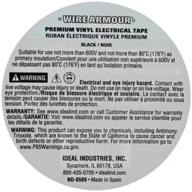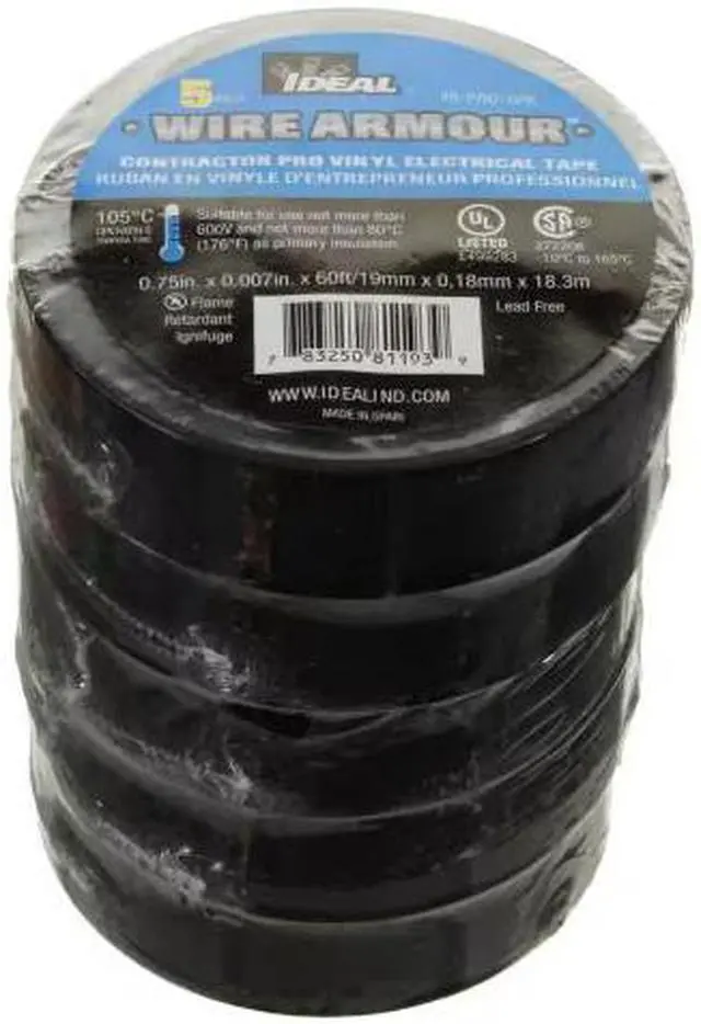When performance matters, you can count on IDEAL Wire Armour Contractor Pro vinyl electrical tape to insulate and protect, stretch with strength, and bond in the toughest conditions and most critical applications at a great value. Commercial electric vinyl tape with blue core technology that provides high elasticity, that is flame retardant, high UV resistant that is impervious to water, oil, acids, alkalis and a wide variety of corrosive chemicals. Primary vinyl electrical tape use for insulation of electrical splices up to 600-Volt.
