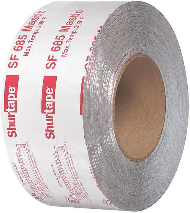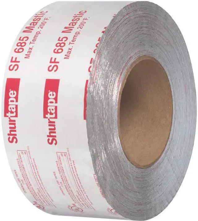 Foil Tape, Tape Brand SHURTAPE, Brand and Series Shurtape ShurMASTIC SF 685, Common Industry Construction, General Maintenance & Repair, Environment Indoor and Outdoor, Imperial Tape Length 33 3/8 yd, Imperial Tape Width 3 in, Imperial Tape WxL 3 in x 33 3/8 yd, Maximum Tape Performance Temperature 200 Degrees F, Minimum Tape Performance Temperature -20 Degrees F, Temperature Range -20 Degrees to 200 Degrees F, Product Form Continuous Roll, Series SF 685, Tape Adhesive Material Rubber. This item has been restricted from sale in the following state (s): []