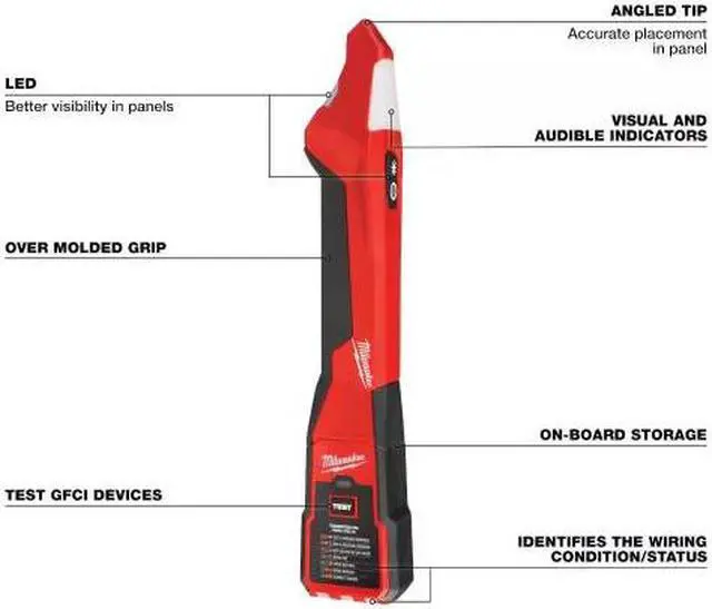 The Milwaukee Circuit Breaker Finder w/ LED is used for identifying the correct circuit in an electrical panel in residential and commercial applications. The Circuit Breaker Finder is comprised of a Transmitter and Receiver that can be used for standard 120V panels with a safety rating of CAT II 135V. This all-in-one solution stores the Transmitter into the Receiver to allow for easier storage and transport on a jobsite. With the LED work light, you can easily work in dark areas with more visibility, and the over molded grip provides durability and comfort for all applications.