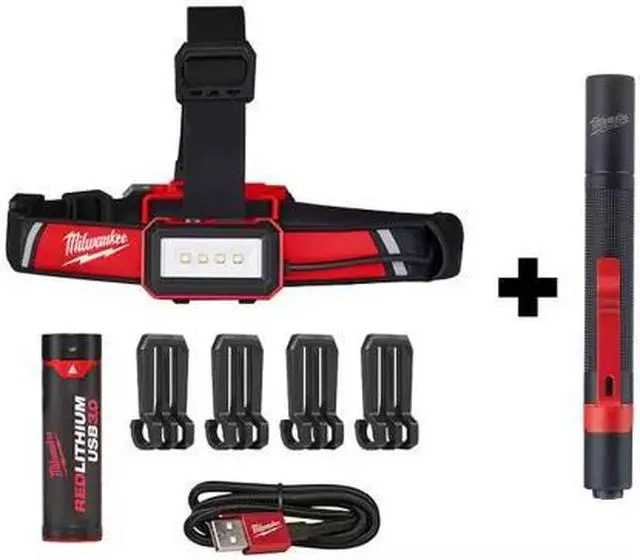 The Milwaukee USB Rechargeable Low-Profile Headlamp is powered by REDLITHIUM USB and delivers 600 Lumens of TRUEVIEW High Definition Output. The flood light headlamp features an ultra-thin light head that provides an unobstructed view with 125° of flood beam coverage. The rechargeable headlamp is designed with the battery pack in the rear for maximum maneuverability in tight spaces and a balanced design for all-day use. The hardhat headlamp is equipped with a sweat absorbing microfiber strap for comfort on bare heads and 4 included hard hat clips for secure connections on all hardhats. The Milwaukee headlamp has 4-light output modes: High, Medium, Low and Eco for 28 plus hours of runtime to maximize light output or extend runtime. The clip on hard hat light is IP54 rated for water and dust resistance and can withstand up to 2M drops, surviving the toughest conditions on and off the jobsite. The USB Rechargeable Low-Profile Headlamp is powered by the REDLITHIUM USB 3.0AH Battery, providing all-day run-time, more recharges, and 3x faster charge time. The Milwaukee REDLITHIUM USB Battery can be recharged in the flashlight via Micro USB or swapped out with additional REDLITHIUM USB Batteries for virtually no downtime. The Low-Profile Headlamp is covered by a limited lifetime warranty. Kit also includes 100 Lumens Aluminum Pen Light with Clip (2105).
