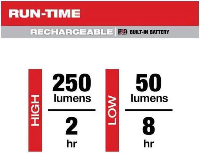 This penlight with laser pointer is built to survive the toughest jobsite conditions with an IP67 water and dustproof rating and withstands impacts up to 2 meters. The Milwaukee Rechargeable 250L Penlight with Laser's built-in battery gives users high performance and rechargeable capabilities where compact size is critical. The Milwaukee Rechargeable 250L Penlight with Laser is covered by a 2-year warranty.